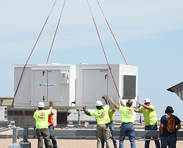 RapidHeli services in St Louis use helicopters as the standard practice for HVAC transport and installation. Helicopter lifts provide an easier, safer, less manpower intensive solution to HVAC unit placement. RapidHeli projects use helicopters to complete commercial HVAC unit installations in a few hours, where a ground crane would have taken substantially longer.